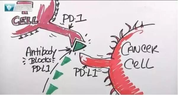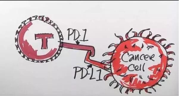 当T细胞表面的PD-1蛋白与肿瘤细胞表面的PD-L1蛋白结合时,T细胞就会认为它是正常细胞,任其在我们体内无限制的生长。